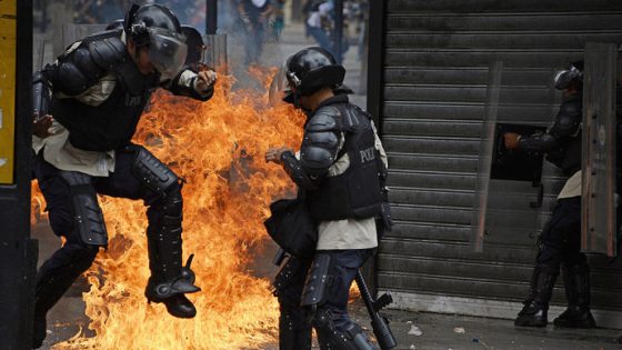 De capacetes, escudos e coletes à prova de balas, militares e policiais venezuelanos impediram nesta quarta-feira o avanço de milhares de opositores que tentavam chegar às...