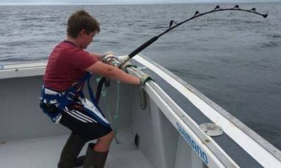 Um menino canadense de 10 anos conseguiu um feito incomum para sua idade: pescou um atum de 220kg em Naufrage Harbour, no litoral da Ilha Prince...