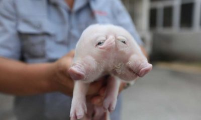 Um leitão com duas cabeças encontrado em frente a um templo budista, na China, se tornou o novo mascote da pequena cidade de Gaoguan. O animal...