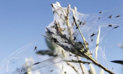 O dia está claro, mas, de repente, o vento sopra e o céu escurece com uma nuvem de aranhas. Não, não é uma cena de filme...