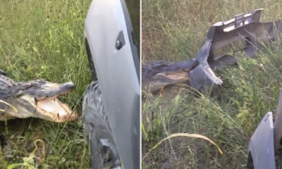 Um vídeo publicado no site Imgur mostra um aligátor (jacaré americano) atacando o para-choque traseiro de uma caminhonete depois que o motorista dá uma ré e...