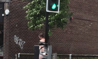 Em uma brincadeira após bebedeira, um homem foi amarrado apenas de cueca e meias em um semáforo de Hazel Grove, subúrbio de Stockport, na Inglaterra. Amigos...