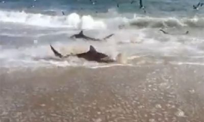 O americano Brian Recker publicou um vídeo em sua conta no Facebook que mostra dezenas de tubarões nadando até perto da praia. O filmete foi feito...