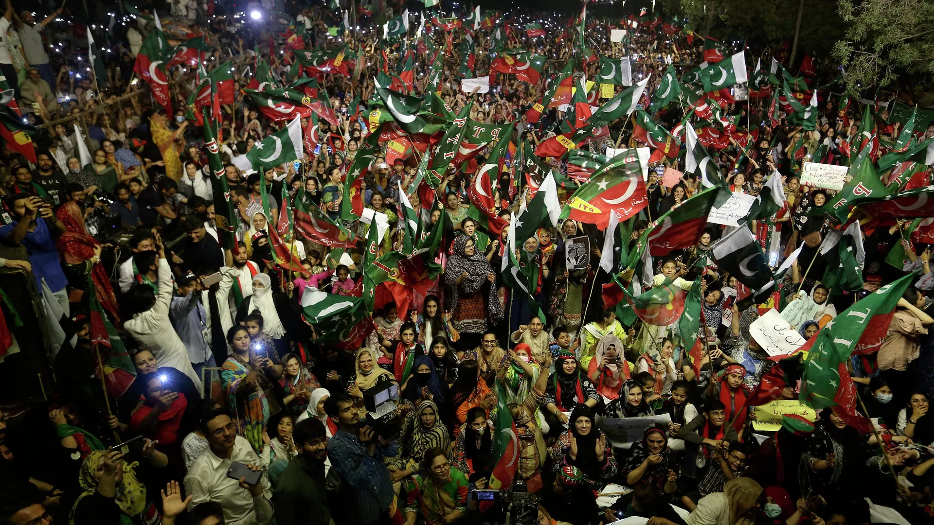 Dezenas de milhares de apoiadores do ex-primeiro-ministro Imran Khan e seu partido Tehreek-e-Insaf saíram às ruas para mostrar seu apoio na noite de domingo, 10. Protestos...