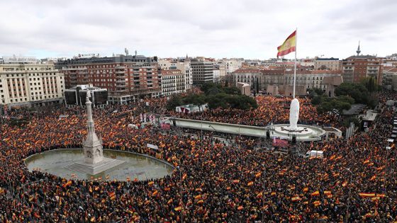Milhares de espanhóis se juntaram a uma manifestação de direita na capital da Espanha, Madri, neste domingo (10) para exigir que o primeiro-ministro socialista, Pedro Sanchez,...