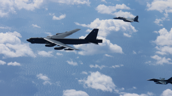 Dois bombardeiros americanos B-52 Stratofortress decolaram da base da Força Aérea de Anderson em Guam como parte de uma “missão de treinamento de rotina nas proximidades...