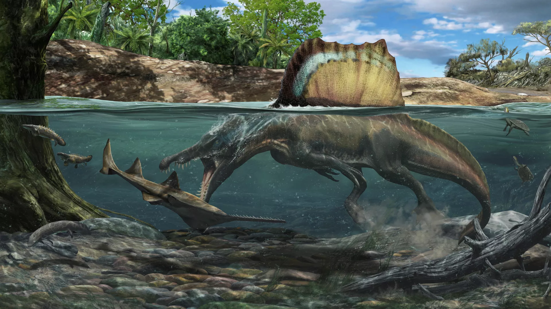 O enorme, mas que se acredita ser incrivelmente ágil, o Spinosaurus era um carnívoro semiaquático que caçava peixes e animais menores. Seu nome implica que era...
