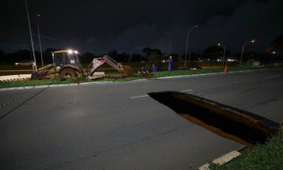 Na noite desta quarta-feira (3), equipes do Governo do Distrito Federal iniciaram os trabalhos para reparar o asfalto e uma corrosão na rede de esgoto em...