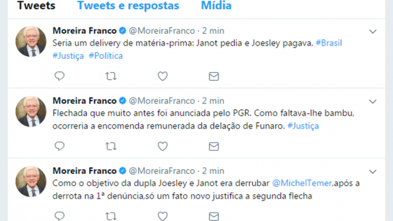 Nayara Figueiredo O ministro da Secretaria Geral da Presidência, Moreira Franco, utilizou sua conta no Twitter neste domingo, 15, para criticar a delação premiada do operador...