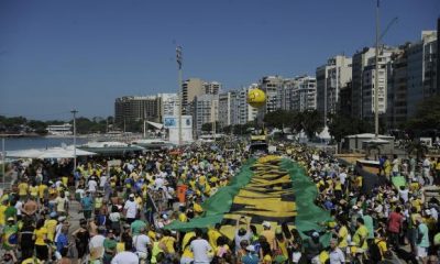 Depois de cinco horas de caminhada pela orla de Copacabana, os manifestantes no Rio de Janeiro encerraram o ato cantando o Hino Nacional e rezando o...