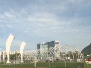A montagem de uma estrutura na Cidade do Rock, em Jacarepaguá, zona oeste do Rio de Janeiro, onde vai ocorrer, em setembro, a versão 2015 do...