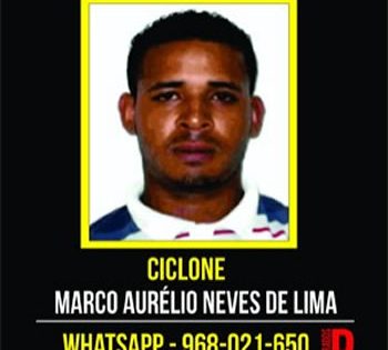 O Portal dos Procurados oferece recompensa de R$ 2 mil reais por informações que levem à prisão de Marco Aurélio Neves de Lima. Um cartaz com...