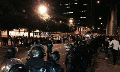Manifestantes de várias categorias, entre as quais professores das redes estadual e municipal, garis, servidores federais da saúde e metroviários se concentraram no começo da noite...