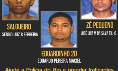O Disque-Denúncia, através do Programa Procurados, lança cartaz com recompensa no valor de R$ 1 mil, por informações que levem a prisão dos traficantes Eduardo Pereira...