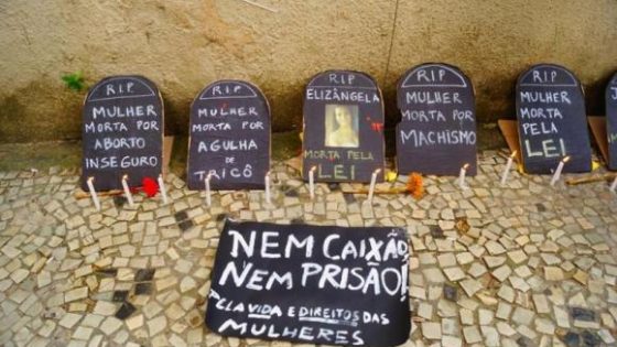 Isabela Vieira Velas, flores e caixões para simbolizar milhares de mulheres que morreram em abortos clandestinos no país, fazem parte de uma instalação de protesto montada...