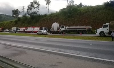 Um acidente envolvendo dois caminhões e um ônibus bloqueou a pista da rodovia Fernão Dias, no sentido São Paulo, na manhã desta sexta-feira. Segundo o Corpo...