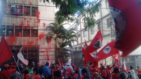 Integrantes do Movimento dos Trabalhadores Rurais Sem-Terra (MST) jogaram tinta vermelha nesta sexta-feira, 6, no prédio em que a presidente do Supremo Tribunal Federal (STF), ministra...
