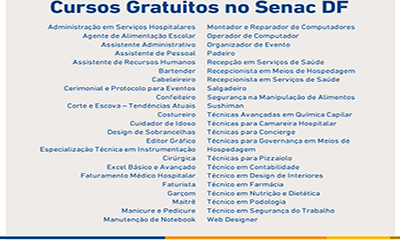 O Senac está com inscrições abertas para 44 cursos técnicos e de formação inicial e continuada do Programa Senac de Gratuidade (PSG) até 18 de junho....