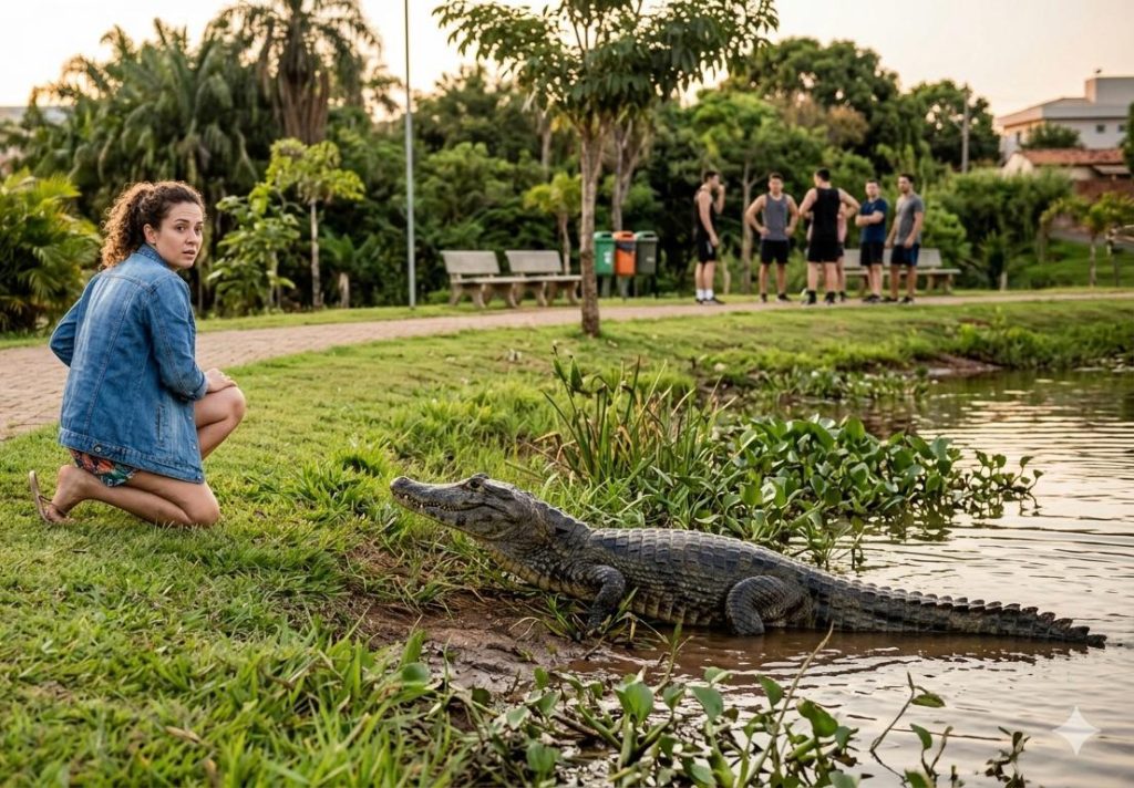 Ela abriu a porta e viu um jacaré. Os dois se olharam e o bicho recuou, deu meia volta e foi embora. “Aqui em Campo Grande, capital de Mato Grosso do Sul, os jacarés são iguais aos homens, não comem ninguém”, pensou com um sorriso. Achou a ideia divertida e postou a frase, mandando-a para alguns amigos. Kkks, corações e beijinhos, e ela foi cuidar de suas coisas, esquecendo o episódio.