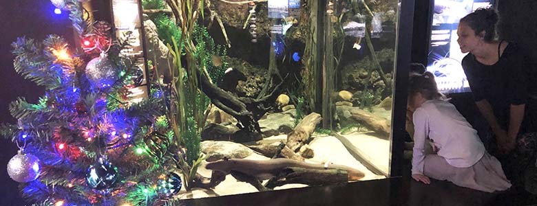 O aquário espera que a árvore de Natal desperte amor e apreço pelos incomuns peixes de água doce.