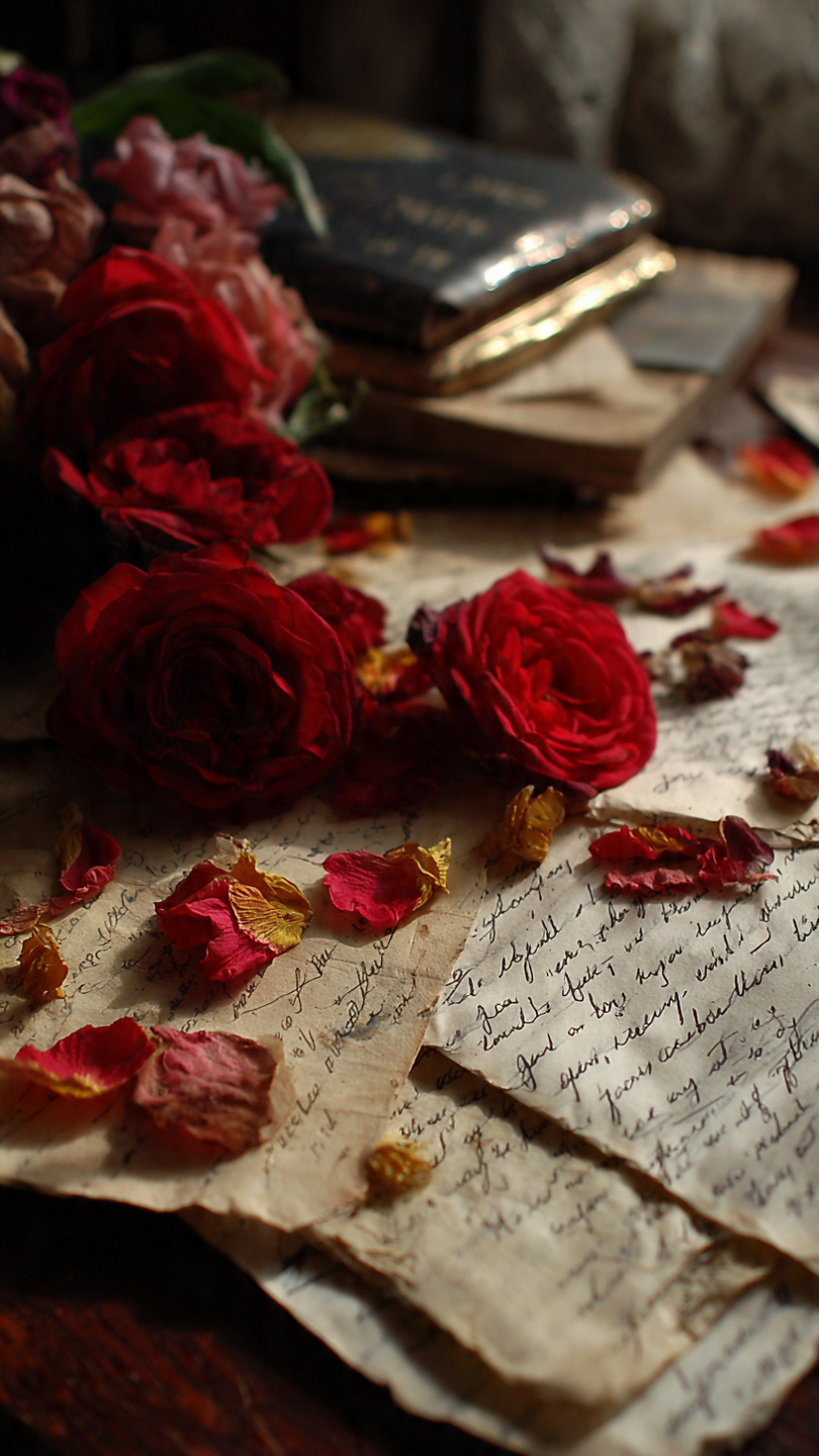 entre páginas desbotadas e flores adormecidas.