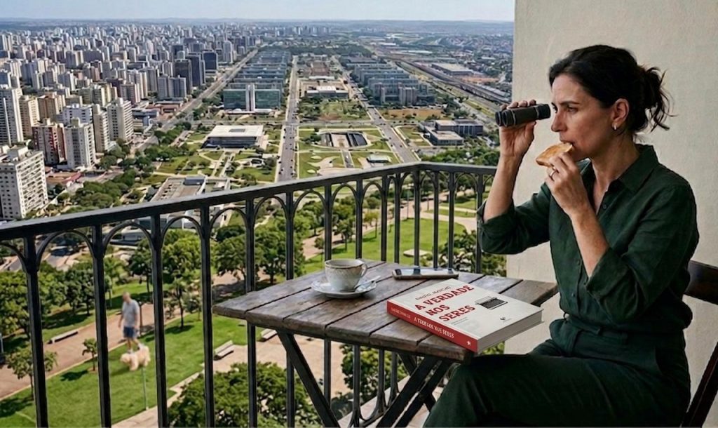 Divorciada duas vezes, preferiu deixar as coisas do coração para os volumes de Álvares de Azevedo que costumava folhear enquanto saboreava chá com torradas na sacada do apartamento com vista para o Lago Paranoá. Nessas ocasiões, binóculo à mão, atrevia-se a se inteirar dos acontecimentos até onde a visão alcançava. E foi assim que ela notou pela primeira vez aquele homem, que parecia aborrecido enquanto passeava com o cachorro miúdo, desses peludos, que há tempos roubaram a preferência por poodles e pequineses.