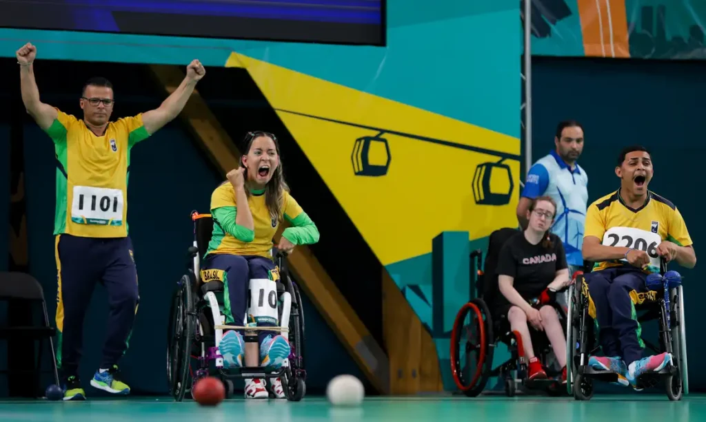 Entre as conquistas do dia, uma garantiu vaga paralímpica. Na bocha, o Brasil foi ouro na disputa por equipes que junta as classes BC1 e BC2 (atletas com grau severo de comprometimento físico-motor e que utilizam mãos ou pés para jogar). O trio formado por Maciel Santos, Andreza Vitória e Iuri Saraiva bateu o Canadá por 8 a 2. O resultado classificou o time à Paralimpíada de Paris, na França, em 2024.
