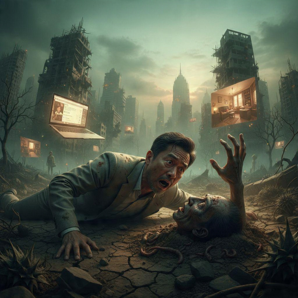 Ele estava entre os pouquíssimos sobreviventes, talvez o único da metrópole onde vivia (?). Era um homem-barata, pois os cientistas acreditavam que elas sobreviveriam a uma hecatombe nuclear. Um homem-barata enlouquecido, cujo psiquismo se mostrara incapaz de encarar a realidade.