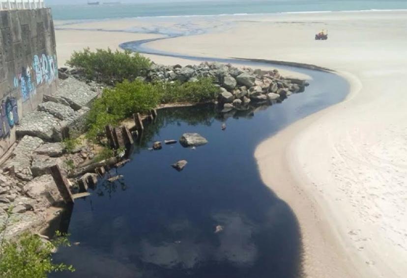 Esgoto despejado na Praia da Ponta d’Areia causa mau cheiro e irrita moradores