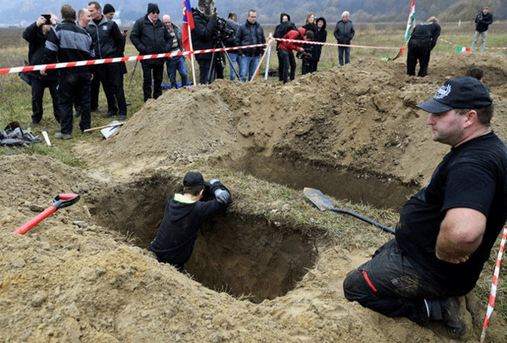 Coveiros da Eslováquia, da Polônia e da Hungria participaram nesta quinta-feira (10) de um campeonato de cavar covas.