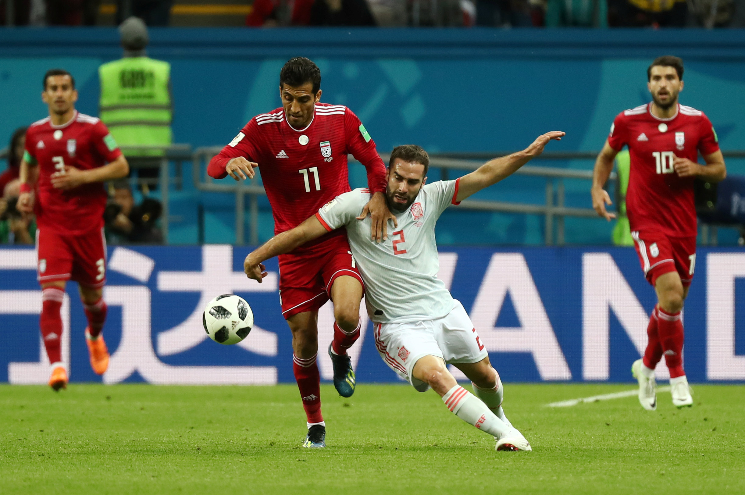 Para o segundo tempo, Hierro manteve a confiança em seus titulares e evitou mudanças. Ele quase foi premiado nos primeiros minutos, quando Piqué e Vázquez perderam grandes chances. Em uma etapa mais movimentada, o Irã buscou o ataque e quase abriu o placar aos 7, com Karim Ansarifard, dando um susto na defesa europeia.