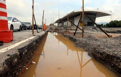 Estações do BRT com obra parada e sem vigia levam insegurança à Barra