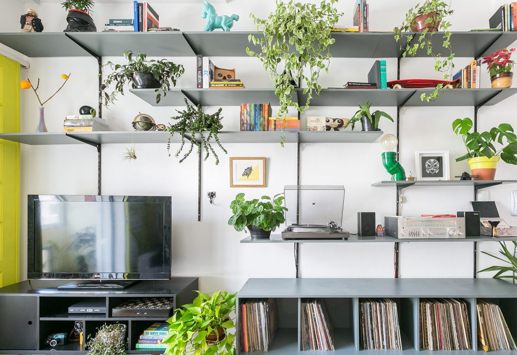 Quando as arquitetas Gabrieli Azevedo e Fernanda Lins , da Matú Arquitetura, foram convocadas para decorar este apartamento, localizado no andar térreo de um edifício no bairro de Santa Cecília, a demanda do casal de moradores era simples: eles queriam dispor de uma estante que cumprisse bem a função de deixar a sala sempre organizada.