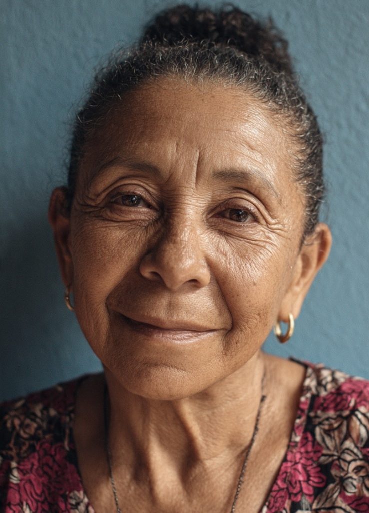 Maria de Guadalupe, hoje com sessenta e dois anos. Sempre fora acima do peso, não exageradamente, mas acima.