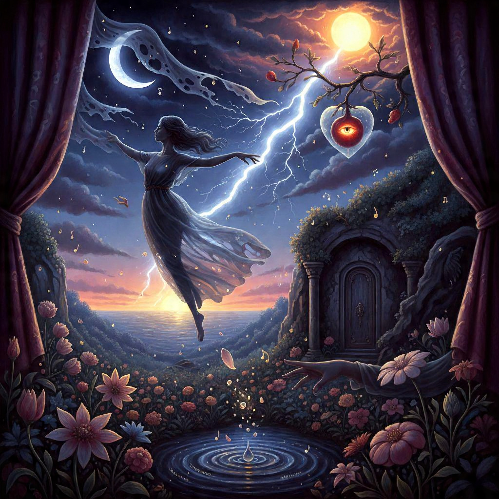 Sou a sombra que dança entre os véus rasgados da lua, quando o tempo suspende sua respiração e apenas o eco do que nunca ousou ser nomeado permanece. Sou o sopro que atravessa as cortinas ao amanhecer, a palavra interrompida nos lábios que se calam para não ferir o silêncio. Sou o perfume secreto do jardim que floresce na noite, invisível ao olhar, e a pétala que desfalece ao primeiro raio de sol. Habito o intervalo entre o desejo e a eternidade, a vertigem do gesto que hesita, o sabor paradoxal do fruto que pende do galho da impossibilidade. Não me busque nos lábios, mas na pausa que os sucede. Não me persiga na posse, mas na saudade que antecede e dilacera depois. Sou o que se revela por trás da porta selada, o relâmpago que rasga o horizonte por um instante e mergulha tudo em trevas mais densas. Sou o amor sem pátria, sem calendário, a maré que se ergue contra os muros da razão. E sou, sobretudo, a cicatriz luminosa na alma que ousou contemplar, ainda que por um segundo, o sol do inalcançável.