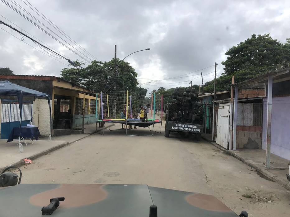 Em uma das intervenções, na Comunidade de Antares, na zona oeste carioca, segundo o secretário de Segurança Pública, general Richard Nunes, os militares se depararam com o fechamento de ruas e de quase todas as entradas com camas elásticas e pula-pulas, usados por crianças para brincar.