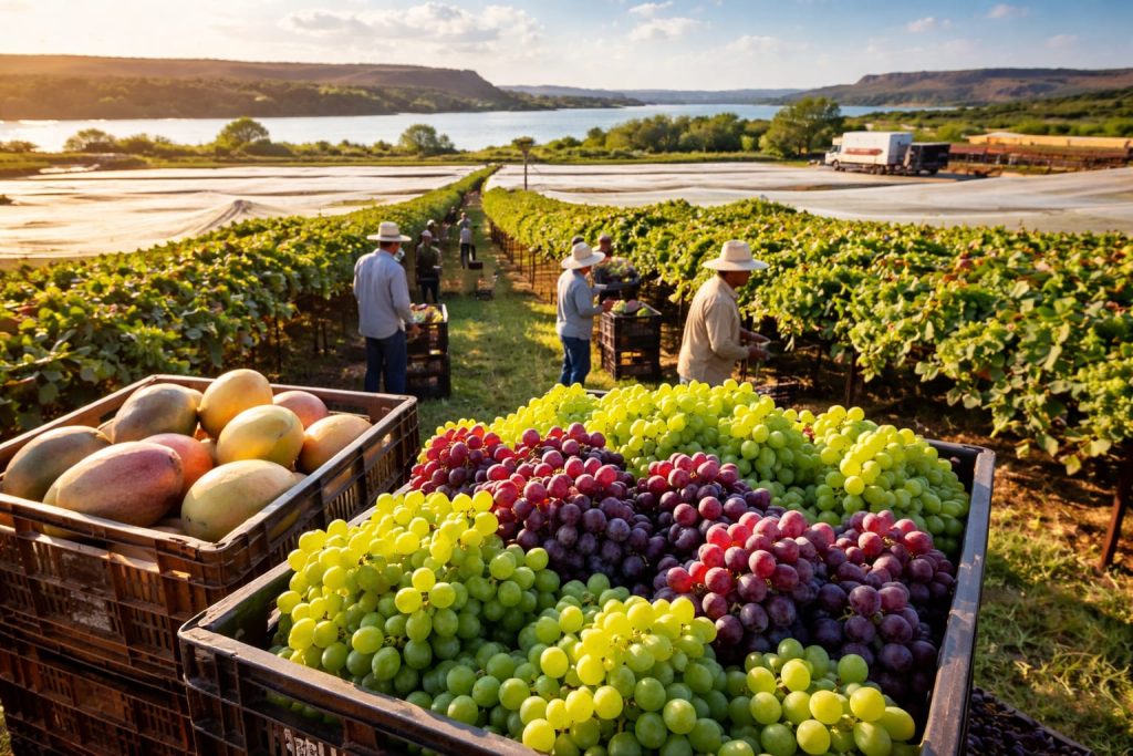 Graças às condições climáticas favoráveis e ao uso de técnicas avançadas de cultivo, o Vale do São Francisco se tornou um dos maiores exportadores de frutas frescas do Brasil. As uvas produzidas na região, por exemplo, são enviadas para mercados exigentes da Europa, enquanto mangas cultivadas no sertão pernambucano chegam a supermercados internacionais com alto padrão de qualidade.