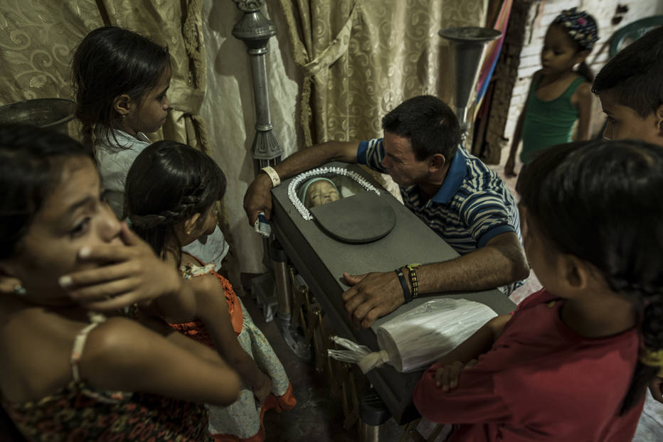 Velório de bebê de 17 meses em San Casimiro: família não consegue comprar fórmula para substituir leite materno. Foto: Meridith Kohut/The New York Times