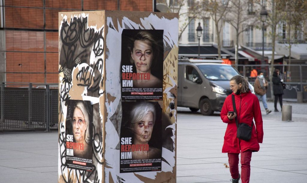 Em Paris, os pôsteres com o rosto da Anne Hidalgo coberto de hematomas e o nariz de Marine Le Pen cheio de sangue, em frente do Hôtel de Ville, desafiam e surpreendem as pessoas que passam.