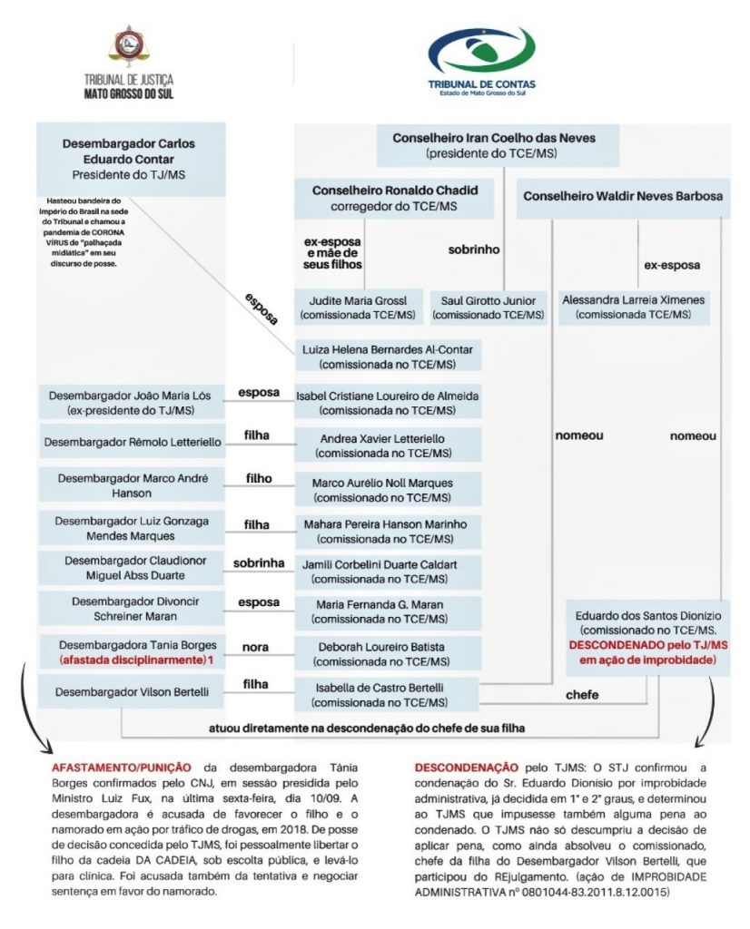 A Rede Pelicano Brasil de Direitos Humanos vem pesquisando e analisando o exercício de cargos em comissão por parentes de desembargadores junto a Tribunais de Contas. Segundo estudos que estão em andamento, só o Tribunal de Contas do Estado de Mato Grosso do Sul, tem mais de sete servidores parentes de desembargadores. Nada contra isso, mas para a Rede Pelicano Brasil de Direitos Humanos, talvez seria mais importante transformar cargos comissionados em cargos efetivos, com servidores concursados, isso sem falar que atualmente tem mais servidores assessorando do que auditando.