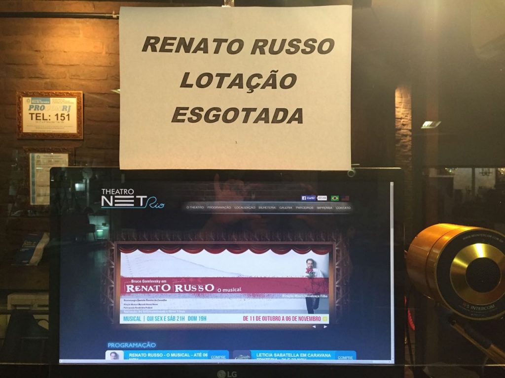 A curta temporada do premiado espetáculo “Renato Russo – O Musical”, iniciada no último dia 13 e que se estende até 6 de novembro, no Rio, já está com lotação esgotada.
