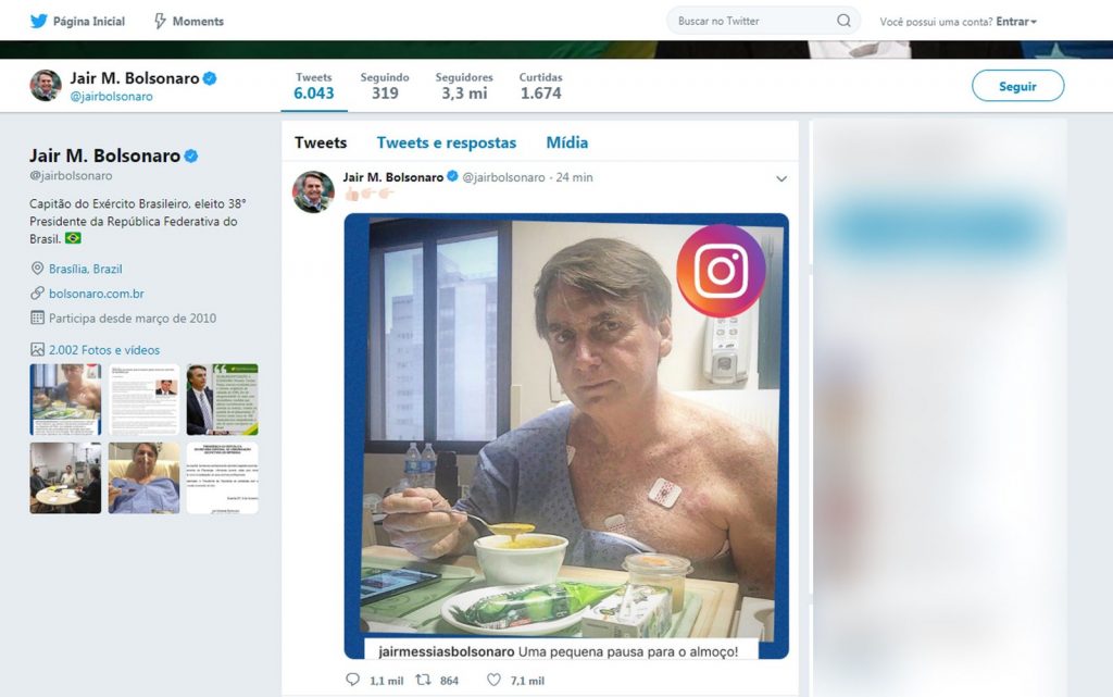 Pela manhã, o presidente fez caminhada, tomou chá e comeu gelatina. Desde que foi diagnosticado com pneumonia, cresceram as preocupações com a saúde do presidente. Apesar disso, segundo médicos, o fato de Bolsonaro ter voltado a se alimentar desde sexta ajuda em sua recuperação.