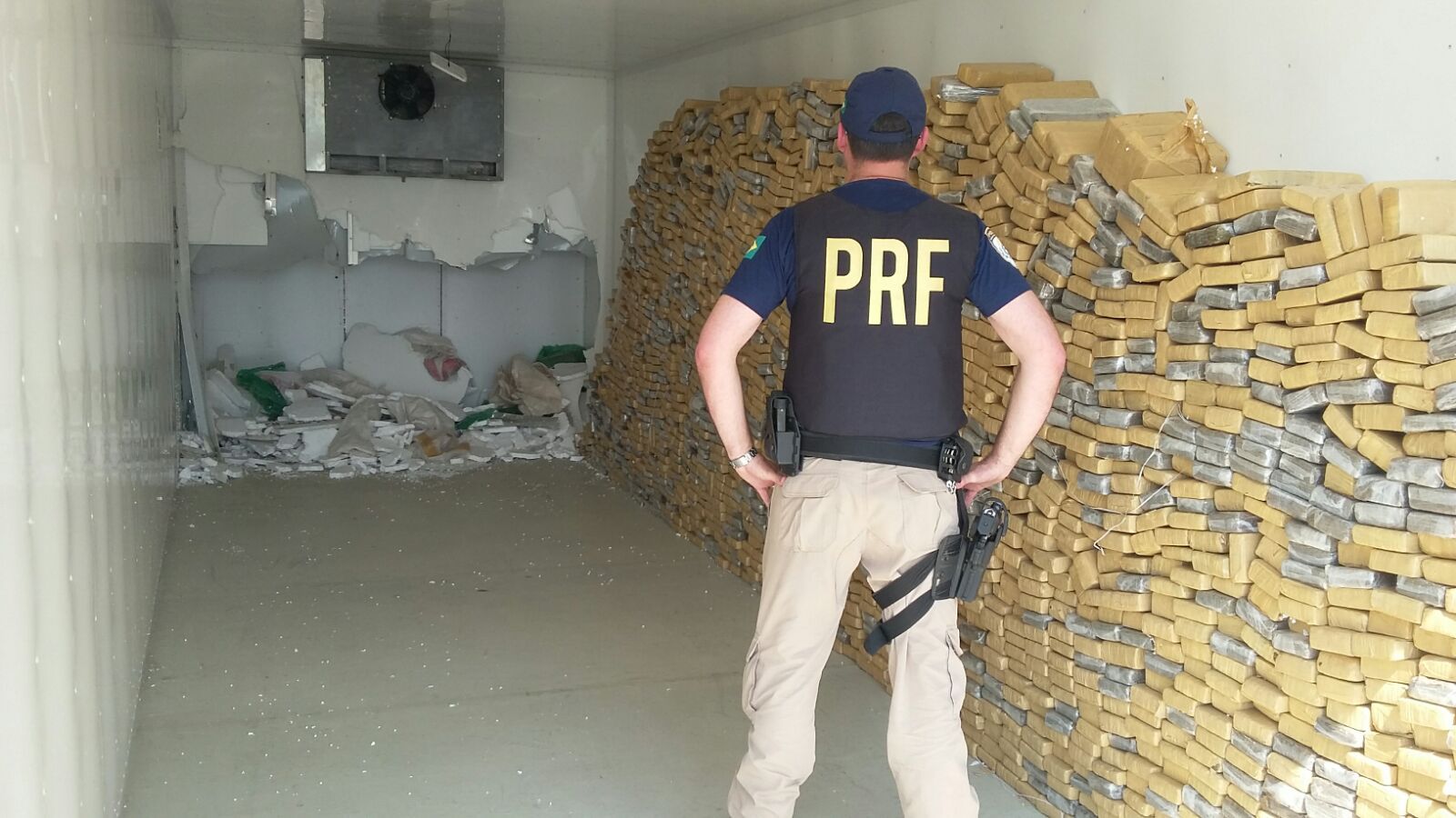 A Polícia Federal (PF) em ação com a Polícia Rodoviária, apreendeu pouco mais de duas toneladas de drogas nesta quarta (24) em Foz do Iguaçu (PR). As drogas estavam em uma carreta e foram descobertas graças a ação de cães farejadores. Foram apreendidos 2.090 quilos de maconha e 2,7 quilos de haxixe.