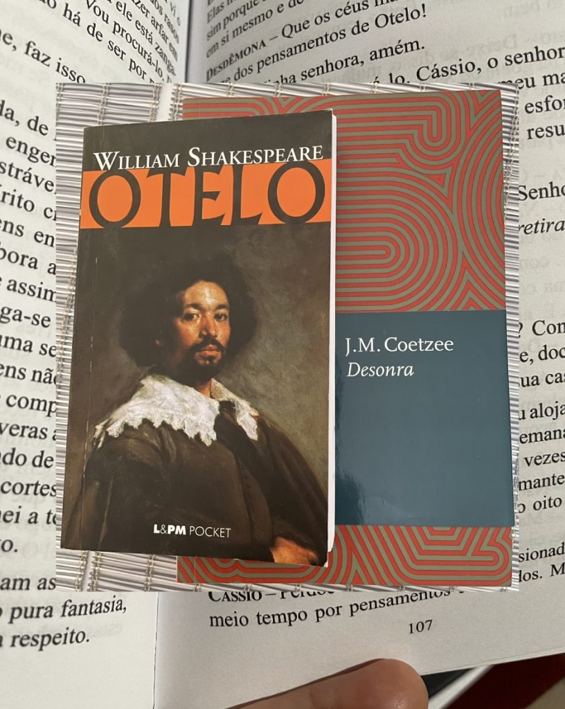 Ao lado de Otelo, estou com vontade de continuar Desonra, de Coetzee. Só li o primeiro capítulo, mas já me provocou desconforto. Um professor, já mais velho, se envolve com uma aluna adolescente e é desligado da universidade. O que o move? Desejo? Fragilidade? Arrogância intelectual?