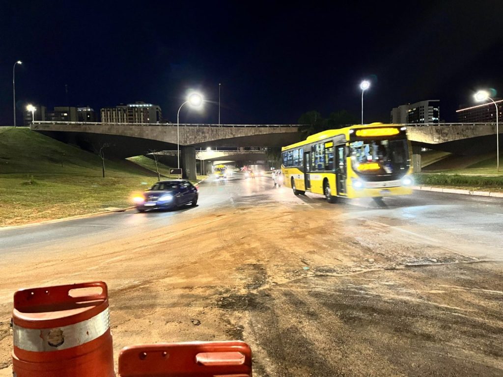 A troca do pavimento da faixa destinada aos ônibus, no trecho situado entre o viaduto do Eixo Monumental e o Pátio Brasil Shopping, está concluída