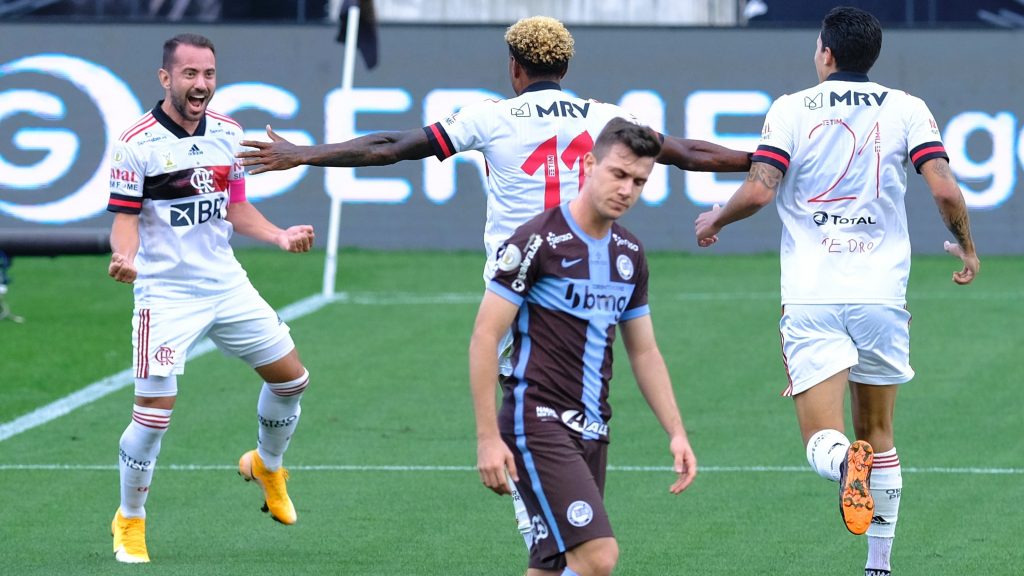 Os gols foram anotados por Everton Ribeiro, Vitinho , Natan, Bruno Henrique e Diego. Coube a Gil descontar para a equipe paulista. Para permanecer líder, o Flamengo vai secar o Galo e o Internacional, que ainda jogam na rodada.