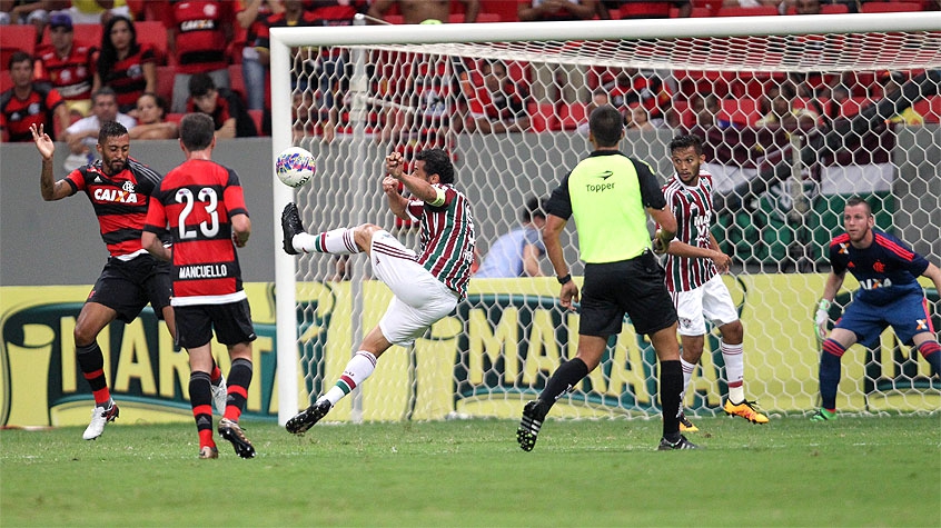 Aos seis minutos, o clima esquentou no Mané Garrincha. Cuellár e Marcos Júnior se desentenderam no meio de campo e uma confusão estourou. O árbitro não quis dar brechas e expulsou os dois jogadores. Em desvantagem, o Fluminense saiu em busca do resultado e o Flamengo se fechou, esperando espaços.