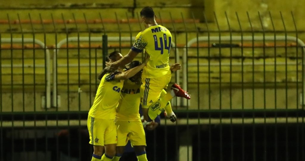 Mesmo sem muita qualidade, a insistência flamenguista faria efeito pouco depois. Aos 18, a cobrança de escanteio de Everton passou por todo mundo e encontrou Rodinei. O lateral emendou de primeira, forte, e contou com o auxílio do goleiro Rafael para marcar.