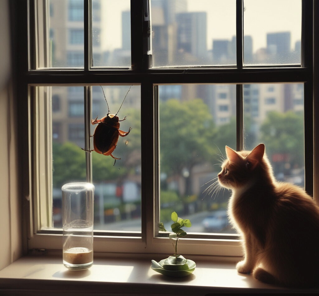 Foi então que a barata entrou voando. Na verdade, não entrou no apartamento; pousou no lindo pelo de Flechinha, olhou pra mim e rosnou ameaçadora.