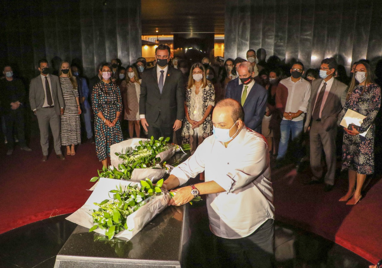 Eles depositaram uma coroa de flores na câmara mortuária, onde estão os restos de JK, em sua homenagem. O ex-presidente morreu em 1976, em um acidente de carro, na Rodovia Dutra, próximo a Resende (RJ).
